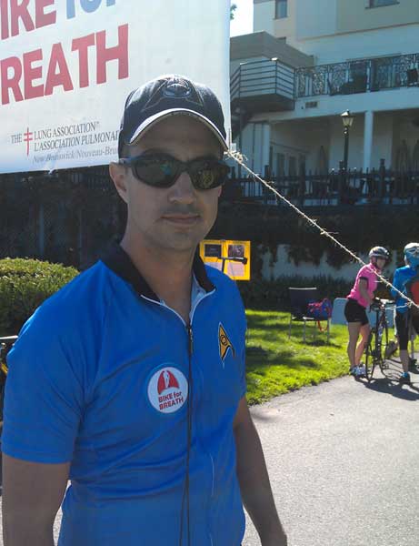 Last sunday Fred (from “Hi! I’m Fred”) and I participated in the NB Lung Association’s signature event, the Bike for Breath, for a second time. Last year was our first year doing it and we trained all summer. We wanted to do it as a physical challenge to ourselves but then found it was such a rewarding event that we knew we would be coming back this year. Last year we had great weather leading up to the event and miserable weather during the event. This year we had a lot of rain leading up to the event making training difficult but the day of the weather couldn’t have been better. It was perfect. Warm in the sun, cool in the shade. No wind to speak of at all. Perfect day for a ride.