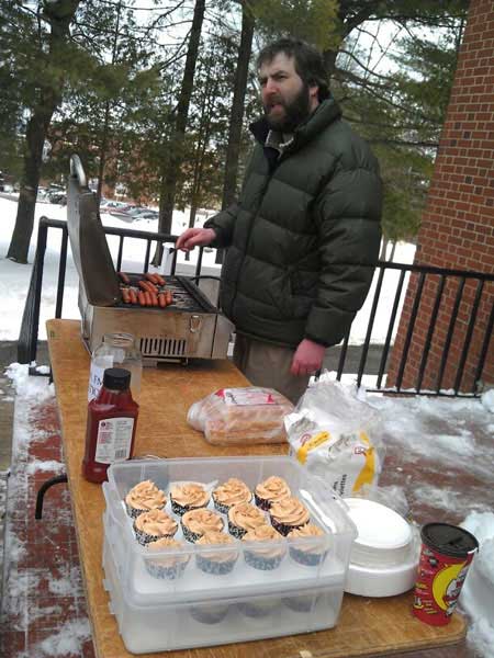 BBQ QRBondo was the organizer (and shoveler, she gets extra credit for that) of this event and deserves a lot of credit for how it turned out.  CHSR members came to help out, say hi, or get a hot dog over the three hours we were set up.  More so, many people on campus stopped by for a bite and filled our jar quite nicely.  We had chicken hot dogs, vegan hot dogs (which made two people very happy) and cupcakes.  Everyone had a good time and it was the first success we needed to push us on for the coming events to come over FunDrive.