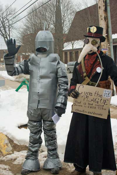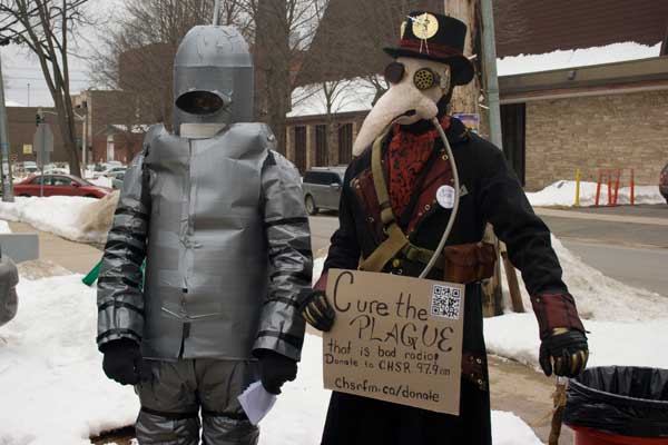 Not everyone in town knows that CHSR is holding our FunDrive right now, heck, a lot of people in Fredericton don’t know we exist. To remedy this some of our volunteers decided to go down to the Market on Saturday in bold costumes.