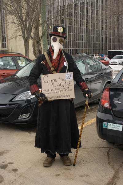 Another member (@the_clock_doc) who works in our Tech department came as his original character The Clockwork Doctor; a Venetian Plague Doctor. You may have seen this get up before at the Fredericton Zombie walk, and will see it again at CHSR’s Evil Dead Movie Marathon.