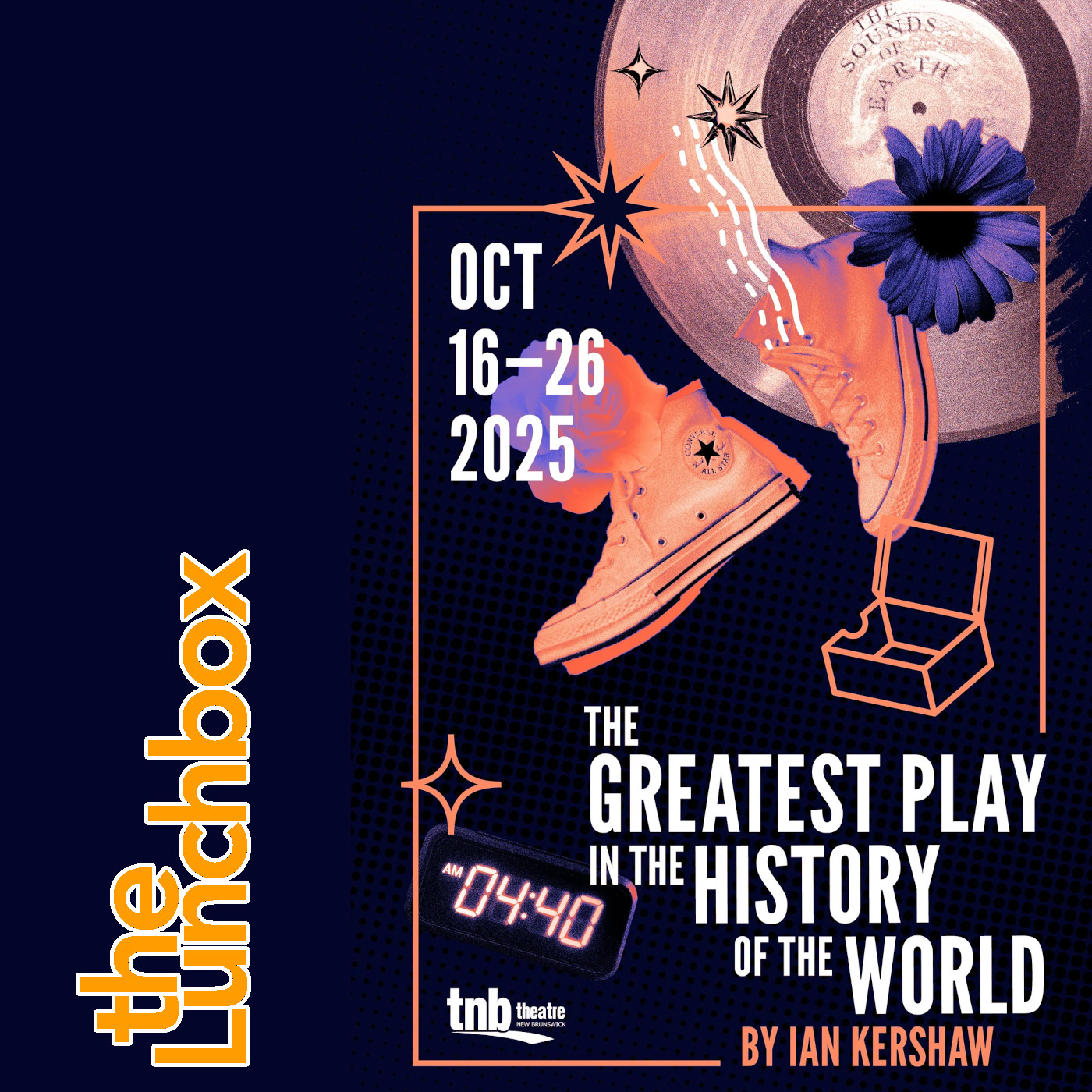 The Greatest Play in the History of the World opens on the Open Space stage on October 16 in Fredericton, and runs nightly until October 18 at 7:30pm with a matinee at 2:00pm on October 19. It heads out on tour across the province before coming back to Fredericton on October 26.